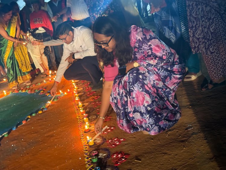 रंगोली स्थल पर जिला पंचायत अध्यक्ष श्रीमती नम्रता सिंह, कलेक्टर श्रीमती तुलिका प्रजापति, पुलिस अधीक्षक श्री यशपाल सिंह सहित अन्य अधिकारियों ने दीप प्रज्वलन किया। दीपों की रौशनी से सजे रंगोली का दृश्य अत्यंत मनमोहक था चारों ओर जगमगाते दीप, रंगबिरंगी रंगोलियां और छत्तीसगढ़ी लोकधुनों की मधुर गूंज से पूरा स्टेडियम उत्सव स्थल में परिवर्तित हो गया। रात्रि में हुई आतिशबाजी ने आसमान को रंगीन रोशनी से सजाकर दर्शकों को मंत्रमुग्ध कर दिया। कार्यक्रम के अंत में सभी प्रतियोगिताओं के विजेताओं और प्रतिभागियों को सम्मानित किया गया। सांस्कृतिक वेशभूषा प्रतियोगिता में 18 प्रतिभागियों ने भाग लेकर छत्तीसगढ़ की पारंपरिक पोशाकों का शानदार प्रदर्शन किया, जिसे दर्शकों ने भरपूर सराहा। इस अवसर पर अपर कलेक्टर श्री जीआर मरकाम, एसडीएम मोहला श्री हेमेंद्र भुआर्य, एसडीएम मानपुर श्री अमित नाथ योगी, डिप्टी कलेक्टर श्री डीआर ध्रुव, सभी विभाग के अधिकारी- कर्मचारी सहित बड़ी संख्या में नागरिकगण उपस्थित रहें।