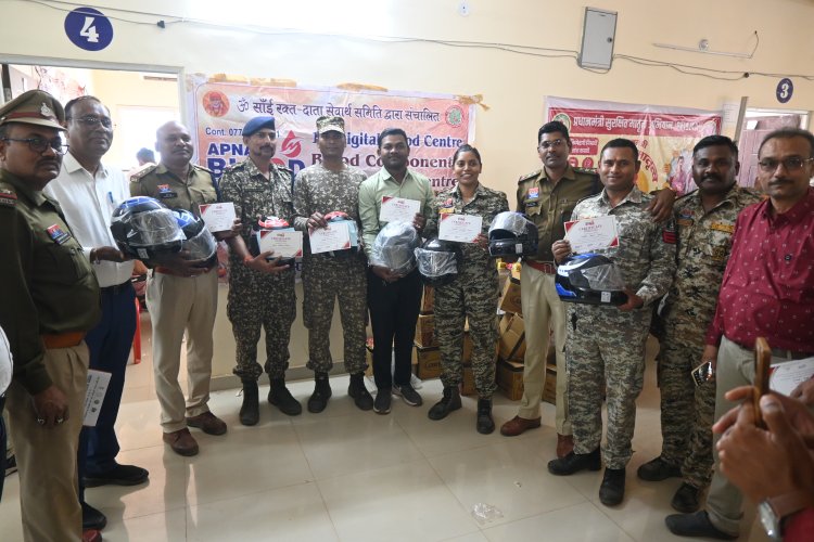 *रक्तदाताओं को सड़क सुरक्षा के प्रति जागरूक करने दुपहिया चलाते समय हमेशा हेलमेट पहनने समझाइश देकर विभाग की तरफ से हेलमेट भेंट की गई*